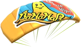 Beim Banana-Boy-Gleitschirm handelt es sich um einen Gleiter, der eine Variante des Gleitschirms darstellt, aber das Logo eines Sponsors enthält.
