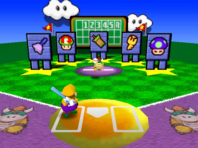 Ein Spieler hält einen Baseballschläger in der Hand und steht in der Nähe von mehreren Tafeln mit darauf abgebildeten Items. Nach drei Sekunden wirft Mini Bowser, welcher vor den Tafeln steht, einen Baseball. Nun muss der Spieler seinen Schläger schwingen und eine Tafel treffen, um das darauf abgebildete Item zu erhalten. Trifft der Spieler keine Tafel oder fängt Mini Bowser den Baseball, geht der Spieler leer aus.