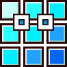 Der Blachelbot stellt einen Gegner dar, der aussieht wie neun hellblaue Fliesen mit zwei Augen.