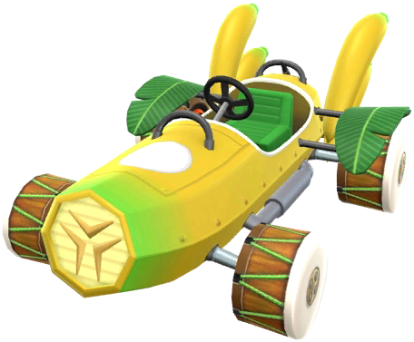 Die Bongo-Banane gehört zu den Karts aus Mario Kart Tour. Sie basiert auf eine Banane auf Reifen aus Holz und mit einigen Blättern.