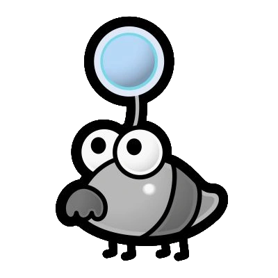 Bubuvicz stellt einen alten Bubu mit einer blauen Kugel am Fühler und einem dunkelgrauen Schnauzbart dar.