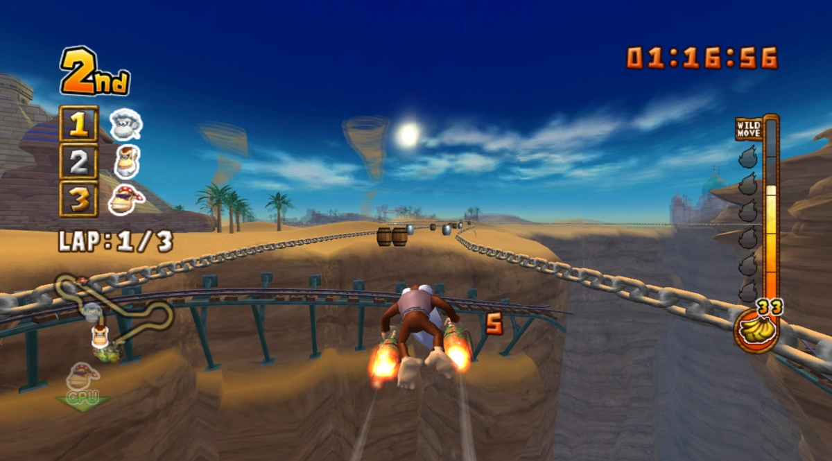 Der Dünenpalast stellt die dritte Rennstrecke im Diamant-Pokal in Donkey Kong Jet Race dar.