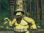 Donkey Kong | Donkey Kong ist der zukünftige Herrscher seiner Heimatinsel Kongo Bongo, da er von dieser dazu auserkoren wurde. Das Datum seines Regierungsantritts wird von dem Schatz verkündet werden. Seine Hauptaufgabe liegt darin, die Kristallkokosnuss zu beschützen. Ansonsten verbringt er seine Zeit mit Diddy oder seiner Freundin Candy. Analog zu vielen Videospielen ist DK auch hier ein großer Bananenliebhaber, seine Art "Schlachtruf" Banana Hamma! bezieht sich sogar auf die gelbe Frucht. |