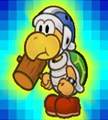 | 030 | Hammer-Bruder | MAX KP: 4, Angriff: 1, Verteidigung: 1. | Kapitel 3-1: Folge dem Weg bis zu einer großen Röhre. Wechsle in die 3D-Ansicht und klettere so weiter hinauf bis zu einer Tür. Gehe danach weiter nach rechts (Fangkarte). | ★★ | Diese Elite-Koopas haben ein Faible für Hämmer. Sie werfen gerne von hohen Stellen mit Hämmern. Diese Jungs wären bestimmt brauchbare Zimmerleute! | ![]() |