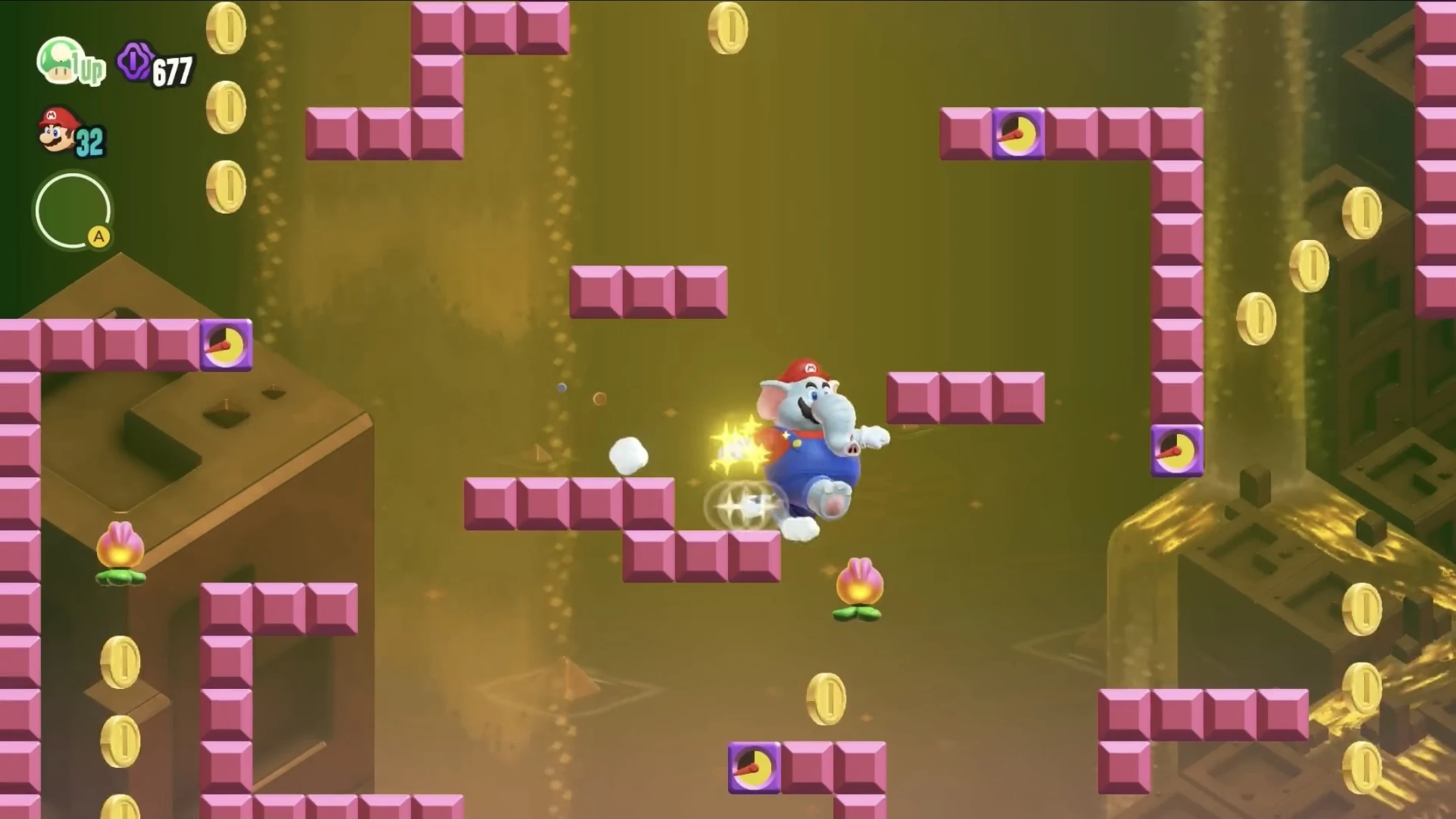 | Gegenstände | !-Block • ?-Block • Bohrerpilz • Elefantenfrucht • Feuerblume • Feuerwalze • Münze • Raketenantrieb • Seifenblasenblume • Super-Pilz • Super-Stern |