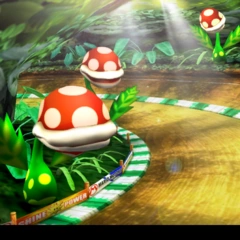| Dieser Cup findet in einem tropischen Dschungel statt. In den letzten beiden Rennen regnet es. In der Challenge muss man mit einem Hammer 15 Koopas eliminieren. Gewinnt man diesen Cup, so erhält man ein Schlag-Item. | |||
