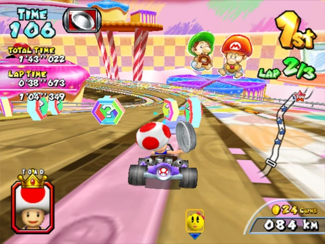 Das Spiel bringt einige Neuerungen mit; so hat nun jeder Charakter neben dem Standard-Kart auch ein speziell auf ihn angepasstes Vehikel, außerdem kamen neue Items hinzu. Desweiteren sind nun auch das Tamagotchi Mametchi und Waluigi spielbar. Es war allerdings kein großer Erfolg.