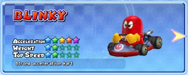 Saggy Gummy | Erinnert an den Schleimi aus der Schleimzeit in Mario Party 4. Bewirkt Tempoverlust, und dass das Kart, da es sich in ein Gummikart verwandelt, breiter und länger wird. |