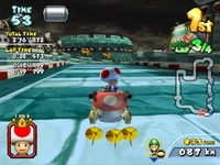 | Bowser Jr. | Mario Highway Mario Beach Diamond City Snow Panic Bowser's Castle Castle Wall Results Screen |