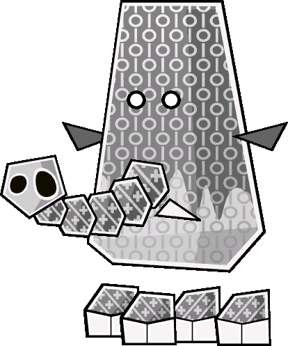 - Außer ihm haben nur das Dunkel-Mammu und die Bosse Bruboter, Super Dimenzio und Schatti 200 oder mehr KP.