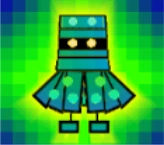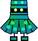Ein Ninjörg ist ein grünes Wesen mit einem quadratischen Kopf mit zwei leuchtenden Augen.