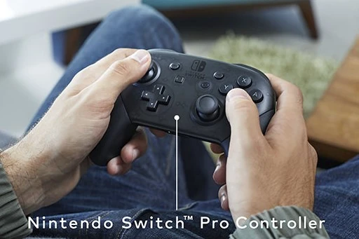 Der Nintendo Switch Pro Controller verfügt, ähnlich wie schon der Wii Pro Controller über ein klassisches Steuerkreuz und Aktionstasten und über zwei in der Höhe versetzte Analog-Sticks. Er ist in einem matten grau gehalten.