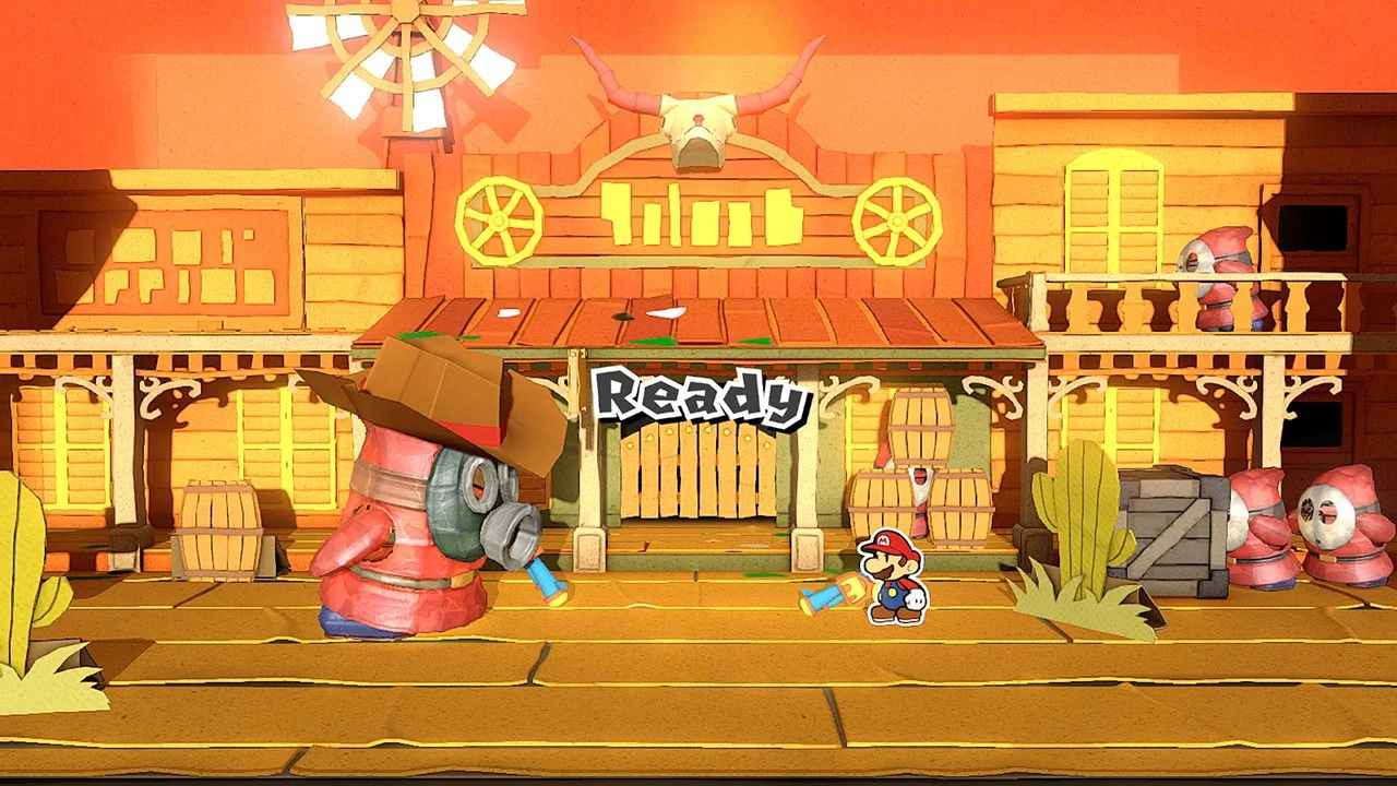 In Paper Mario: The Origami King tritt ein Pappmacho-Snifit-Revolverheld während der Show im zweiten Stock des Shogun-Theaters auf. Während der Show hat Papier-Mario die Aufgabe, eine Stadt vor insgesamt drei Revolverhelden zu beschützen, von denen der Pappmacho-Snifit-Revolverheld der Stärkste ist. Dazu bekommt Papier-Mario einen Revolver, mit dem er auf seinen Gegner schießen muss, sobald eine Anweisung dazu auf dem Bildschirm erscheint. Schießt Papier-Mario zu spät, schießt sein Gegner und Papier-Mario erleidet Schaden. Die beiden anderen Pappmacho-Revolverhelden sind der Pappmacho-Gumba-Revolverheld und der Pappmacho-Spike-Revolverheld.