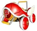 Das Design ist exakt dasselbe, wie das des Koopa-Flitzer mit dem Unterschied, dass es rot ist (und somit auf einen roten Panzer basiert) und statt einem K ein P als Emblem hat.