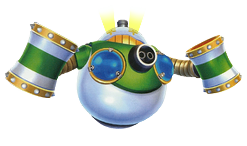 - Im weiteren Verlauf des Spieles kann man in der Galaxie Bowser Jr.s Böllerbunker Überreste des besiegten Pressluftpolterers vorfinden. Die Arme und der Kopf sind abgetrennt vom Körper, das Cockpit kaputt.