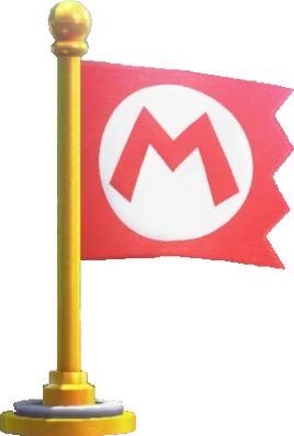 Als erstes trat er in New Super Mario Bros. auf. Er setzt ein Kontrollpunkt beim Passieren, sodass man wenn man stirbt zur Flagge gelangt. Er kommt meist ungefähr in der Mitte eines Levels, ist aber zunächst unsichtbar, und wird automatisch aktiviert, wenn man ihn passiert, was durch eine Fahne mit Pilz angezeigt wird, die von oben herunterfällt, und am Touchscreen auf der Fortschrittsleiste an der Stelle des Rücksetzpunktes stehen bleibt.