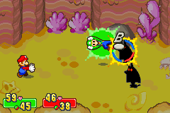 Zuerst springt Luigi auf Mario zu, woraufhin Mario ihn mit A auffangen muss. Nun muss man den A-Knopf gedrückt halten, während Mario Luigi immer schneller dreht. Das manipuliert auch das Anvisieren des Gegners mit dem Zielkreuz, was sich dabei um den Gegner dreht. Lässt man nun im richtigen Moment den A-Knopf los (wenn das Zielkreuz auf dem Gegner steht), schleudert Mario Luigi in Richtung des Gegners. Jetzt mit Luigi im rechtzeitig B drücken und der Angriff ist geglückt.