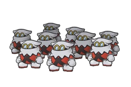 - Gumbrina kann die Soldateska scannen, jedoch erscheint sie wie die Fuzzy-Horde nicht im Lexikon. Dort wird dafür der Eintrag des Fußsoldaten angezeigt. In Paper Mario: Die Legende vom Äonentor (Nintendo Switch) wurde dies geändert und sowohl die Soldateska als auch die Fuzzy-Horde haben eigene Lexikon-Einträge erhalten.