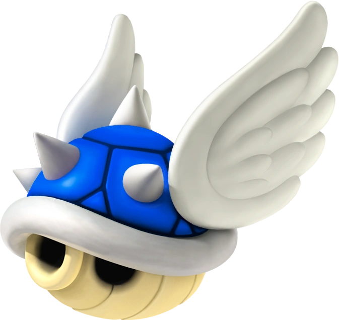 In Mario Kart: Double Dash!! erscheint er zum ersten Mal in geflügelter Form. Er trifft das Kart auf erster Stelle und lässt es überschlagen. Andere Fahrer die in den Explosionsradius gelangen, rotieren. Da das Flugsystem noch nicht bestens ausgereift war, treten manchmal Fehler auf, an denen der Stachi-Panzer sein Ziel erst nach längerer Zeit findet. Hier hat er weiße Stacheln.