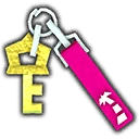 Der Suite-Schlüssel ist ein gelber Schlüssel mit einem pinkfarbenen Schild als Verzierung.