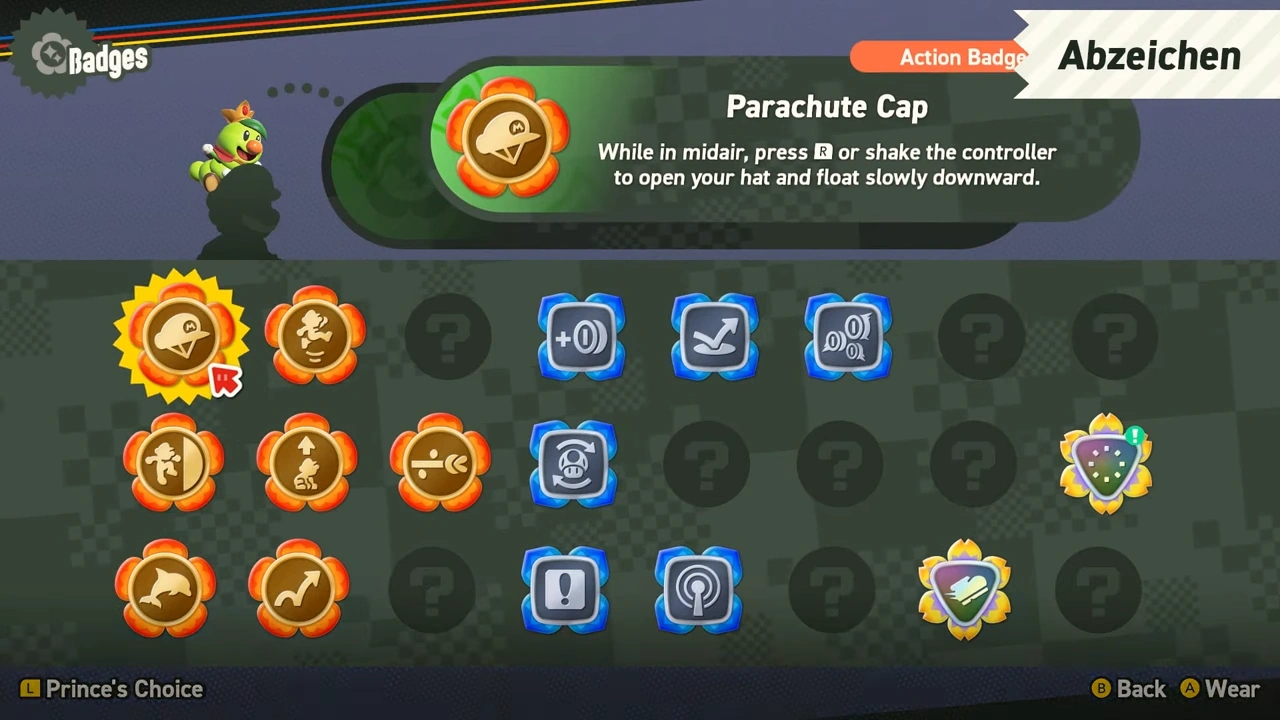 | Unterstützende Charaktere | Kapitän Toad • Plauderblume • Poplin • Prinz Florian |