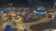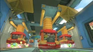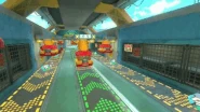 Am Anfang der Fahrbahn findet man an bestimmten Stellen Rollbänder im Boden. Das grüne bewegende Band in der Mitte beschleunigt das Fahrzeug. Die zwei roten Bänder an den Seiten, verlangsamen einen, dafür kann man dort Itemboxen finden. Über den Bändern befinden sich große Industriehämmer, die in regelmäßigen Abständen auf den Boden schlagen und so das Fahren auf den Bändern erschweren. Im nächsten Abschnitt findet man weitere Bänder die Itemboxen und Blöcke transportieren. Die Blöcke sollte man besser vermeiden, sonst wird man verlangsamt. Nach einer Rechtskurve erscheint eine weitere Kurve nach links die aus weiteren roten oder grünen Bändern besteht. Danach blinken überall rote Lichter, man springt aus dem Gebäude und ergattert ein weiteres Item. Nach dem man wieder auf dem Boden angekommen ist erscheinen viele kleine Hügel an denen man ein oder zwei Tricks machen kann. Kurz vorm Ende der Strecke befindet sich ein großes Schlammfeld mit Beschleunigunsstreifen, welche es ermöglichen ohne Geschwindigkeitsverlust den Schlamm zu passieren. Doch Bagger stören euch und verdecken sie mit ihren Schaufeln. Zum Schluss springt ihr über eine Rampe und kommt so zur Ziellinie.