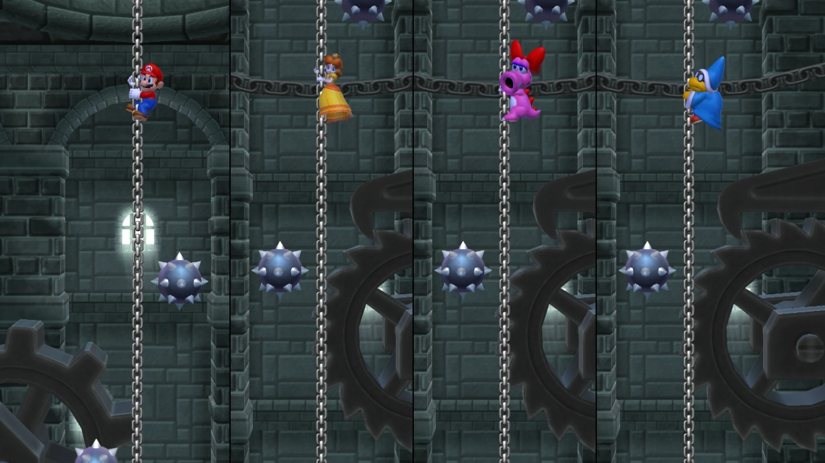 In Mario Party 9 kann eins der folgenden vier Minispiele für Verkehrte Welt ausgewählt werden: