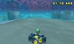 - Es gibt sofort nach dem Start links eine Rampe, die man nutzen kann. Einen Turbo-Pilz zu benutzen ist hier sinnvoll.