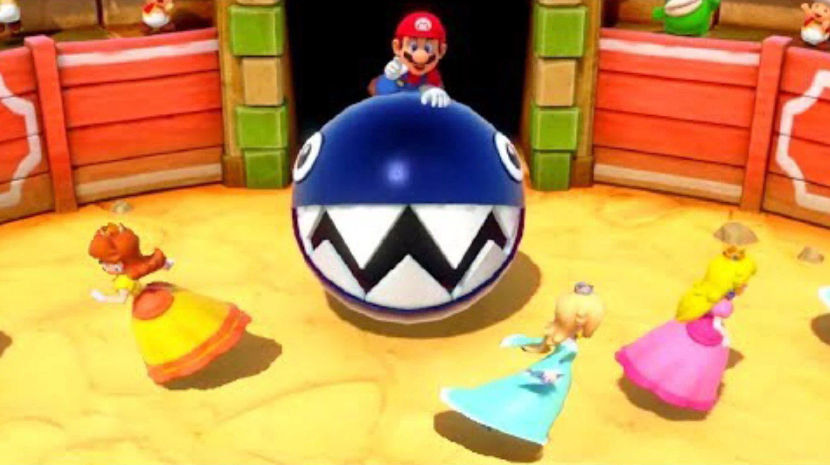 - Si el jugador sobre el Chomp Cadenas expulsa a todos, ganará y si se agotan los 30 segundos y no lo logra, ganará el equipo formado por tres personajes.