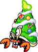 Es la de un cangrejo ermitaño con un caparazón en espiral, su caparazón esta decorado cual árbol navideño un fragmento de la estrella judía esta a manera de estrella navideña, parece tener un ojo algo vago