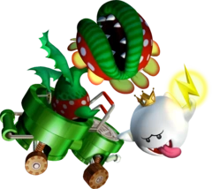 Floro Piraña junto al Rey Boo conduciendo un kart en Mario Kart: Double Dash!!