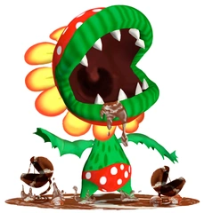 GCN:Super Mario Sunshine | Esta Planta Piraña descomunal se diferencia de las demás en que puede caminar e incluso volar. Como te puedes imaginar, aparece como jefe final en algunas aventuras de Mario. La maña que demuestra como futbolista o a los mandos de un kart es capaz de sorprender a propios y extraños. No es menos famoso su papel de canasta en Mario Slam Basketball. |