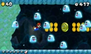 Las Monedas Luna son similares a las Monedas Estrellas, aparecieron por primera vez en New Super Mario Bros. 2, sólo aparecieron en el mundo estrella, estas no sirven para comprar casas de Toad o niveles, pero si las recoges todas aparecerá una estrella más en tu archivo, son doradas y con una luna parecida a la Luna 3-Up. Aquí están los niveles en los que aparece en New Super Mario Bros. 2.