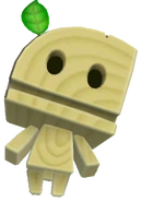 En el minijuego ¡Leña al leño!, un Tronquito se encarga de colocar sobre el tocón de un árbol los troncos de madera que los jugadores deben cortar mientras otros dos Tronquitos les miran.
