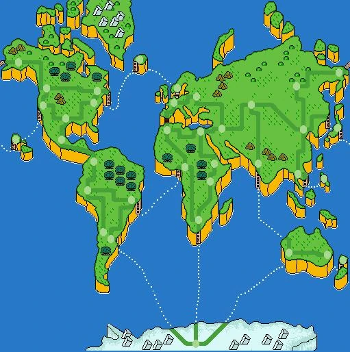 Hahmot: Mario • Luigi • Princess Toadstool • Toad • Bowser • Ludwig von Koopa • Lemmy Koopa • Iggy Koopa • Larry Koopa • Roy Koopa • Wendy O. Koopa • Morton Koopa Jr. • Angry Sun • Baby Cheep • Big Bertha • Bloober • Bloober Baby • Bloober Nanny • Bob-omb • Boom Boom • Boomerang Bro. • Fire Bro. • Sledge Bro. • Hammer Bro. • Bullet Bill • Chain Chomp • Cheep-Cheep • Dry Bones • Fire Chomp • Koopa Troopa • Koopa Paratroopa • Fire Snake • Goomba • Paragoomba • Ptooie • Spiny • Lakitu • Rocky Wrench • Thwomp • Paikat: Dark Land • Desert Land • Big Island • Pipe Land • Sky Land • Sea Side • Bowser's Castle • Princess Peach's Castle • Tuomionlaiva • Todellinen maailma • Brooklyn | |