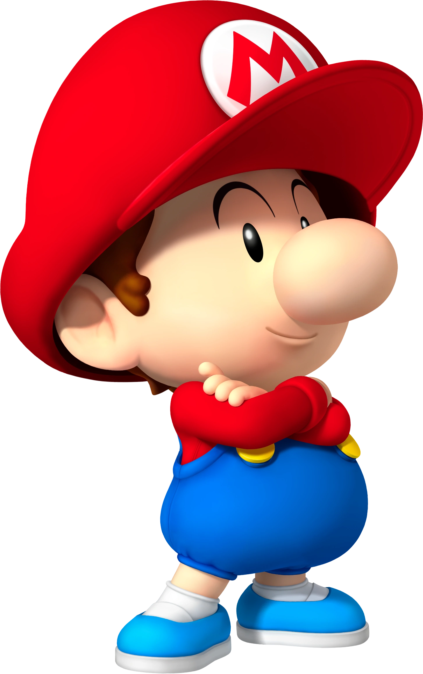 Bébé Mario porte exactement les mêmes habits que le Mario qu'il sera plus tard (excepté qu'il portera des gants et des chaussures marrons). Il n'a pas de moustache et ses sourcils sont plus fins, tout comme Bébé Luigi. Comme sa "version" adulte, Bébé Mario est plus petit mais plus imposant que son frère. Il a une voix très aiguë comme montre le jeu Mario Golf.