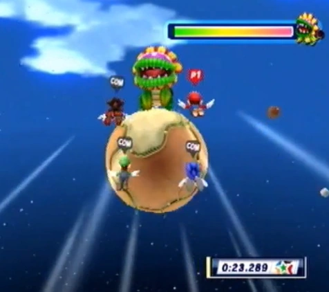 | Objets | Carapace verte • Champignon 1UP • Champignon Boo • Champignon abeille • Champignon de pierre • Champignon de soin • Champignon ressort • Chrono + • Clé • Dé chance • Fleur de feu • Fleur nuage • Foret • Fragment d'étoile • Fruit • Fruit ballon • Fruit lumière • Grande étoile • Morceau d'étoile • Médaille comète • Noix de coco • Note • Pastèque • Piment turbo • Pièce • Pièce violette • Pièce ? • Étoile arc-en-ciel • Étoile de bronze • Étoile de puissance • Étoile d'argent • Étoile verte • Œuf de Yoshi |