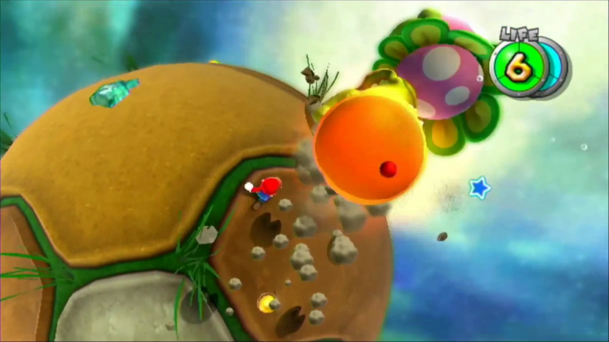 Mario atterrit sur un œuf, mais quand celui-ci éclot, li libère Dino Piranha Jr., qui semble énervé de sortir de son sommeil.