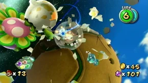 | Éléments | Alvéole • Anneau (Super Mario Galaxy) • Anneau étoile • Balançoire • Ballon • Bloc ? • Bloc ? volant • Bloc de glace • Bloc serpent • Bloc tac-tic • Bloc vide • Bloc étrange • Blocs rouges et bleus • Boule de neige • Brasier • Brique • Bubbler • Bulbe vert • Bulle • Caisse • Canon • Clou • Coffre au trésor • Cristal • Dalles clic-clac • Drapeau relais • Fleur • Fleur (grappin) • Fleur (plateforme) • Graine volante • Grille • Ice Meteor • Interrupteur levier • Interrupteur rapide • Interrupteur à charge au sol • Météore • Nuage • Oiseau de sable • Pancarte flèche • Patère dorée • Perche • Plaque de téléportation • Plasma Stuce • Plateforme • Plateforme rétrécissante • Portail • Porte verrouillée • Radeau nénuphar • Rampe de lancement • Robinet • Rocher • Souche • Sphère étoilée • Star Piece Cluster • Stone Wheel • Stone circle • Super anneau étoile • Torche • Tornade • Tremplin • Tuile réversible • Tuyau • Vaisseau champignon • Vaisseau volant • Vigne grimpante • Warp Pad |