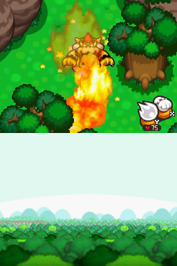 Wiggler fait alors mine d'avoir oublié, ce qui Bowser fou de rage. Wiggler s'énerve alors à son tour qu'il ai mangé la carotte et s'en suis un combat que Bowser remporte. La chenille finit par donner le Bill Bourrin et Bowser retourne vers le canon et lance le missile, que le château de Bowser esquive en volant, grâce aux dernière installations de Gracowitz. Le château écrase Bowser, l'étourdissant sur le coup, mais il grandi et vainc le château avec l'aide précieuse de Mario et Luigi, situés dans le Sanctuaire postérieur. Après le combat, Bowser retrouve sa taille normale et se rend compte que le combat à ouvert un passage vers la Prairie O'Rayon, que le roi Koopa doit traverser pour atteindre son château.