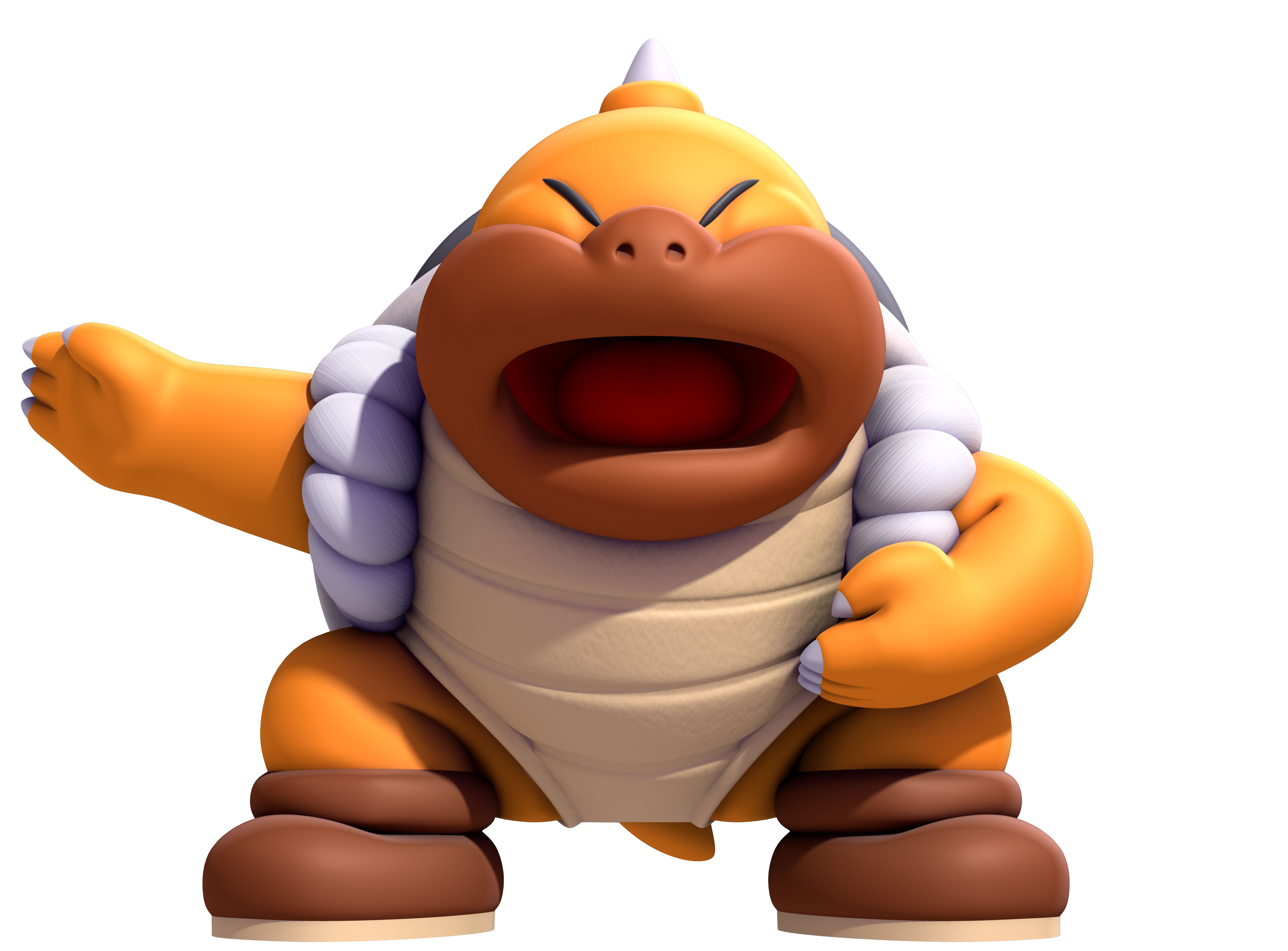 Lors du combat, il agit comme un Frère Sumo, et saute sur les plateformes pour espérer toucher le joueur grâce à son onde de choc qui descend. Il peut aussi taper deux fois sur la plateforme pour déclencher ainsi deux ondes de choc.
