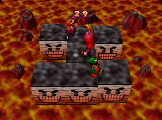 Les Grindels apparaissent également dans le mini-jeu Dalles de lave de Mario Party 2. Ici, sept Grindels servent de plateforme au dessus d'une surface de lave. Avant de changer de position, ils tremblent lentement. Lorsqu'il se déplacent, ils laissent place au vide derrière eux, ce qui peut faire chuter les joueurs directement dans la lave.