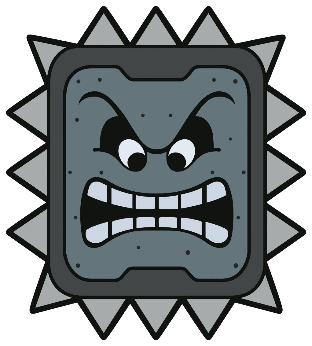 | Grindel • Maxi-Thwomp • Méga Thwomp • Omodon • Prédateur • Spiked Thwomp • Stone Elevator • Thwimp • Thwnif • Thwomp • Thwomp de sécurité • Thwomp osseux • Thwomp à queue • Thwomp étoile |