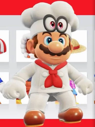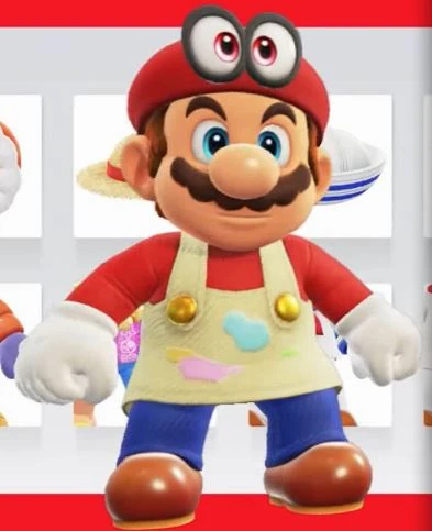 | C'est une référence au tablier de Mario sur une illustration de Mario Paint Le béret fait référence à la jaquette du jeu Mario Artist. | Pays de la Cuisine | |