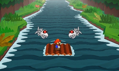 Des Ossecs et d'autres ennemis aquatiques occupent les douves de la forteresse des Terreurs de Bowser.