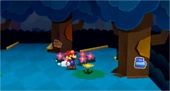 Une voix appelle le héros et le guide. Sur un tableau se retrouve collée une couronne argentée. Mario la libère et la couronne le remercie mais se met ensuite à le blâmer du ravage que, selon elle, le plombier aurait commis. Cependant le protagoniste principal dit que ce n'est pas lui mais l'infâme Bowser. Elle ne le croît toujours pas et continue de lui reprocher cet acte. Mario se ressaisit et lui dit qu'il veut bien l'aider à remettre en ordre la fête et à récupérer tous les Stickers Royaux. La couronne accepte avec gaieté et se présente : elle s'appelle Collette et est un sticker.