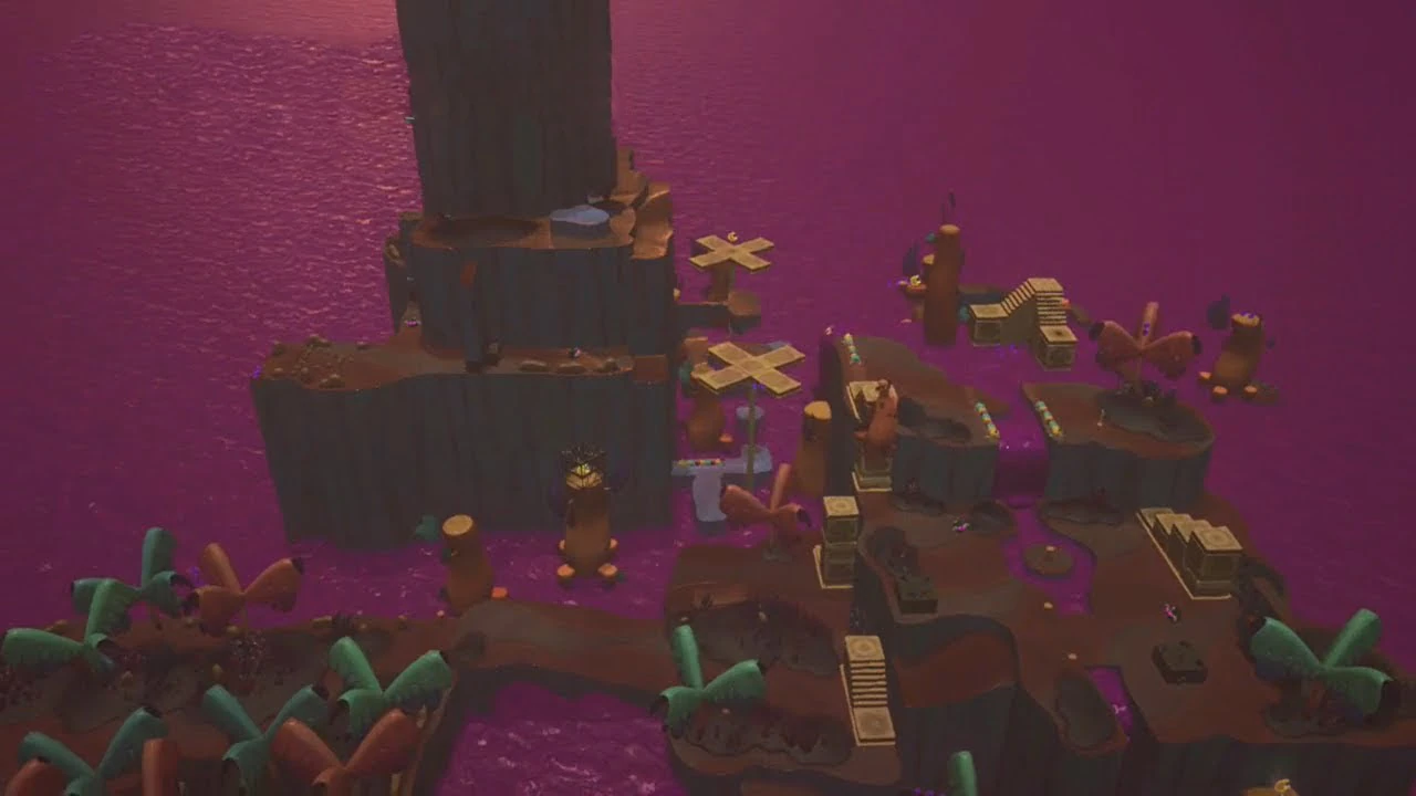 Dans l'histoire, Mario et Cappy se crashent sur cette île après avoir été la victime d'un cannon lancé par Bowser. L'Odyssée, endommagé par la chute, nécessite dix lunes de puissance pour pouvoir décoller à nouveau et se rendre au pays des Gratte-ciel. Une nouvelle quête démarre alors pour Mario alors que Cappy est temporairement capturé par Klepto.