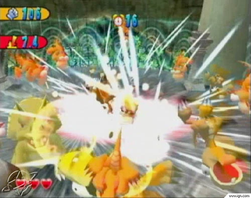 . Wario se mettra alors à tournoyer dans les airs avec sa prise puis à s'écraser avec elle. L'onde de choc touche les ennemis alentour, ce qui aura pour effet de les vaincre ou de les assommer.