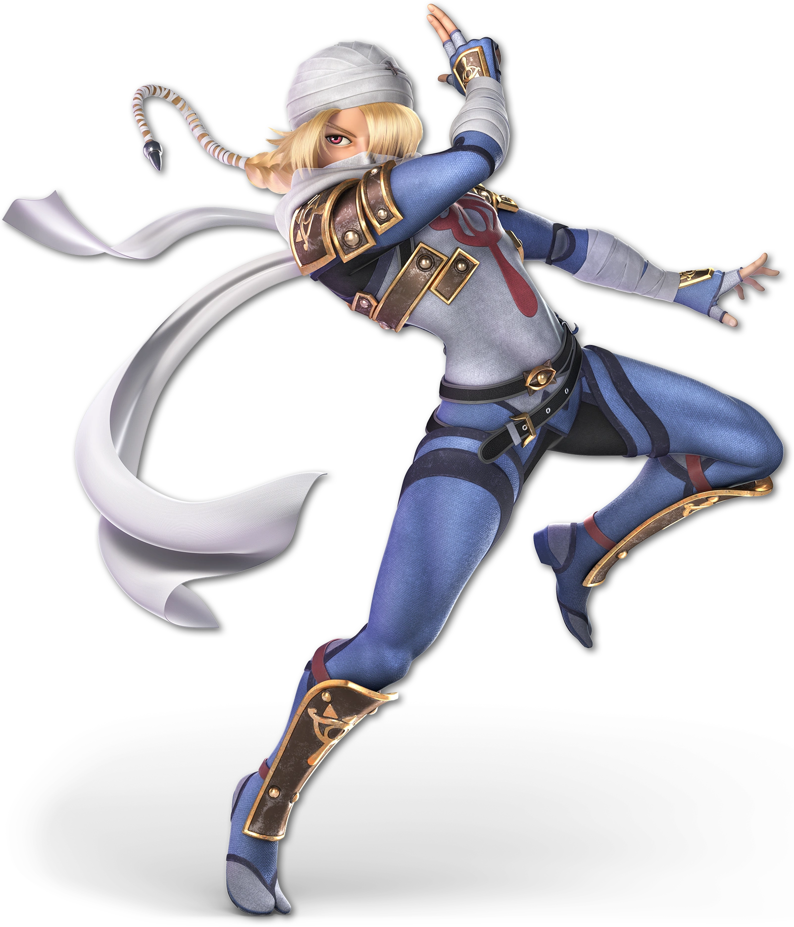 Zelda, déguisée en Sheik, a une apparence plus masculine et ressemble à un membre de la tribu des Sheikah avec leur symbole en forme de monocle de vérité avec un œil représentant celle-ci.
