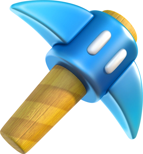 La super pioche[1] est un objet qui est apparu pour la première fois dans Captain Toad: Treasure Tracker. Elle ressemble à une pioche bleue sur laquelle se trouvent des yeux, avec un large manche en bois.